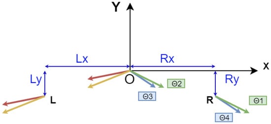 Figure 1 shows a schematic of the proposed model, with the two pupils and the center of the head projected in a two-dimensional plane. For simplicity, we will focus on the case of the right eye. Note that similar formulas are used to rotate the vector for the left eye as well.