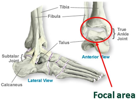 - Ankle Joint. Cleveland Clinic. 2023. Available online: https://my.clevelandclinic.org/health/body/24909-ankle-joint (accessed on 28 July 2023).