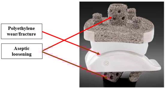 The primary failure modes of TAA are polyethylene wear and aseptic loosening [18]. Figure 6 shows the location of these failure modes. Aseptic loosening is a non-infectious failure of prosthetic component fixation, leading to unstable and unintended motions of the component [19].