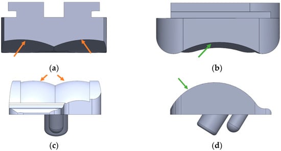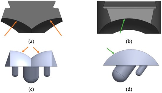 Critical radii for congruency of INBONE II articulating surfaces. (a) Bearing condylar radii, (b) Bearing medial radius, (c) Talar component condylar radii, (d) Talar component medial radius.