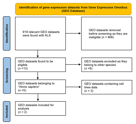 Microarray datasets pertaining to Amyotrophic Lateral Sclerosis (ALS) were retrieved from the Gene Expression Omnibus (GEO) database [9] and were screened through a set of inclusion and exclusion criteria.