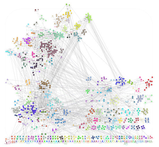 - Kuhn, M.; von Mering, C.; Campillos, M.; Jensen, L.J.; Bork, P. STITCH: Interaction networks of chemicals and proteins. Nucleic Acids Res. 2008, 36, D684–D688. [Google Scholar] [CrossRef] [PubMed]