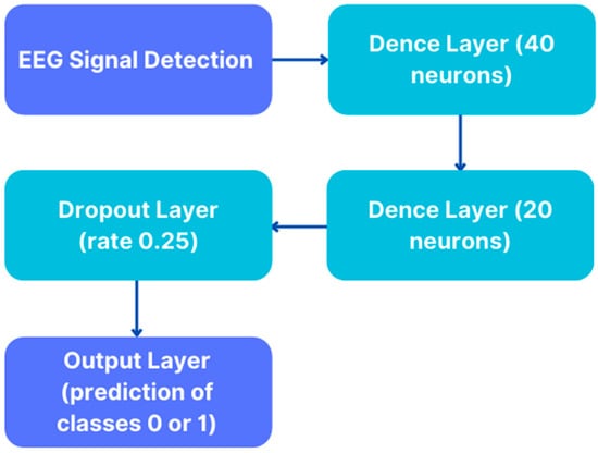 The aim of this research is to create a TinyML model with the ability for integration into the microprocessor of an implantable closed-loop neurostimulation device in order to achieve fast, efficient, and accurate detection of any emerging epileptic seizure in the patient wearing the device with the least possible consumption of the device’s resources. The architecture of the implantable closed-loop neurostimulation system appropriate for our technology resembles the existing RNS system [82]. Our proposal aspiration is for this system to have the novelty of using a TinyML algorithm, aiming at more accurate and rapid processing of the patient’s EEG signals in order to detect the occurrence of an epileptic seizure and generate an appropriate response after an immediate decision to suppress the ongoing epileptic seizure. However, it is important to note that our proposal focuses only on processing and classifying EEG signals, not on the response to the ongoing seizure. More specifically, the presented system has the potential to continuously record the patient’s EEG signals, perform real-time processing, analyze the recorded EEG signals, and, based on their features, determine when an epileptic seizure occurs. A more detailed description of the model architecture is given in Section 4.4.2.