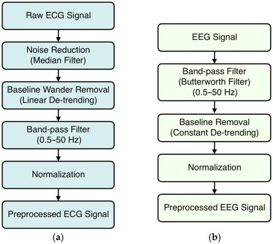 Preprocessing steps for (a) ECG signals and (b) EEG signals.