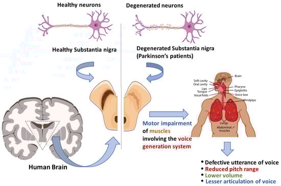 - Ho, K.; Iansek, R.; Marigliani, C.; Bradshaw, J.L.; Gates, S. Speech impairment in a large sample of patients with Parkinson’s disease. Behav. Neurol. 1999, 11, 131–137. [Google Scholar] [CrossRef] [PubMed]