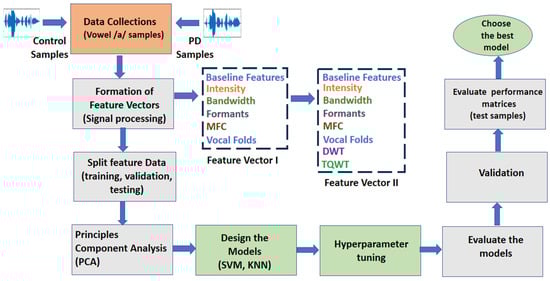 - Islam, R.; Abdel-Raheem, E.; Tarique, M. Voiced Features and Artificial Neural Network to Diagnose Parkinson’s Disease Patients. In Proceedings of the International Conference on Electrical and Computing Technologies and Applications, Ras Al Khaimah, United Arab Emirates, 23–25 November 2022; pp. 132–136. [Google Scholar] [CrossRef]