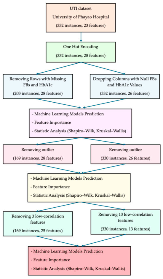- The refined datasets were subjected once more to machine learning prediction, feature importance, and statistical analysis to confirm the robustness of the results.