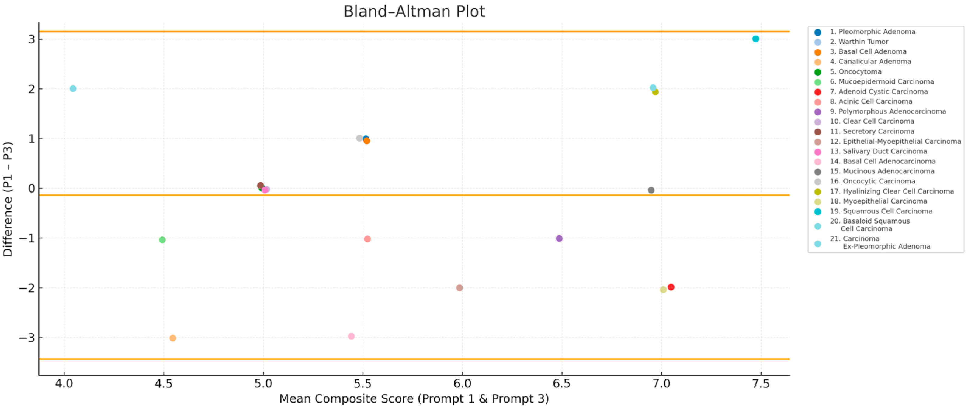 3.4. Bland–Altman Analysis: ChatGPT Score Variability