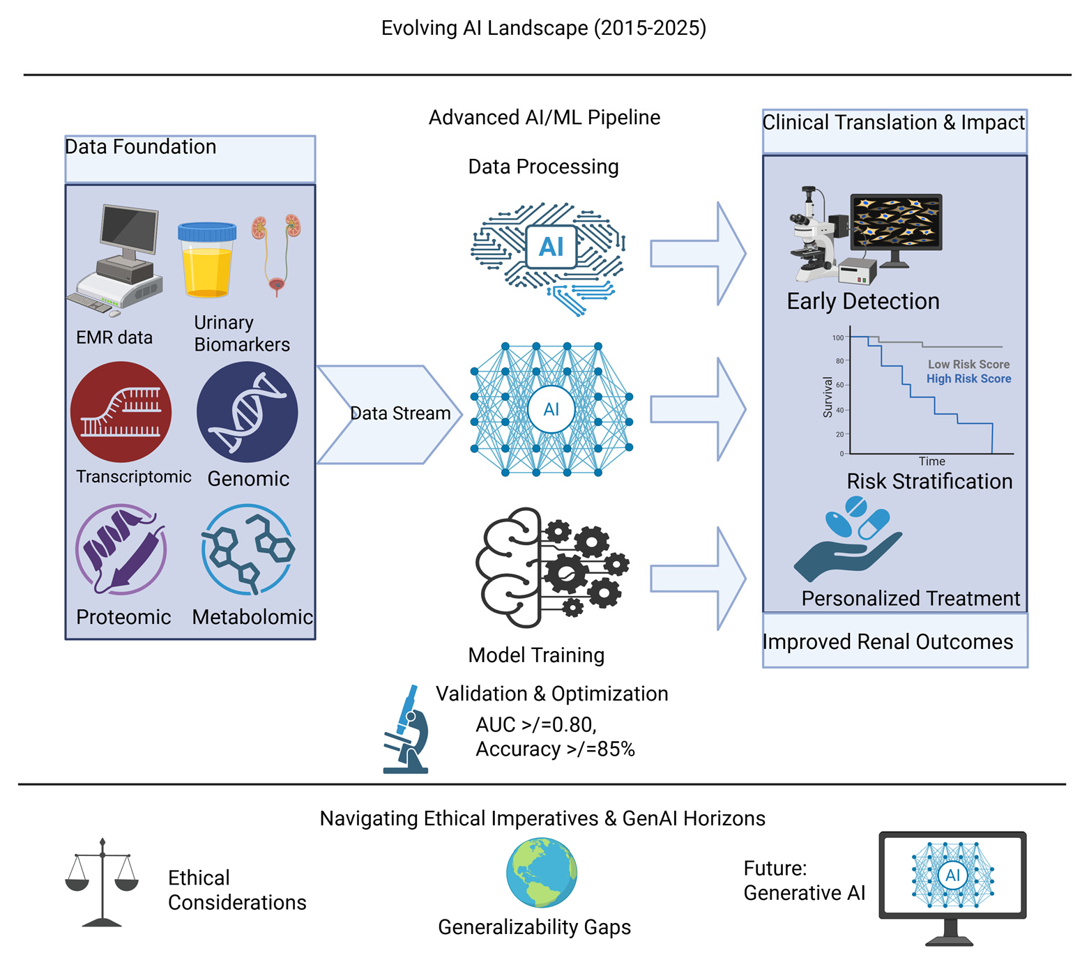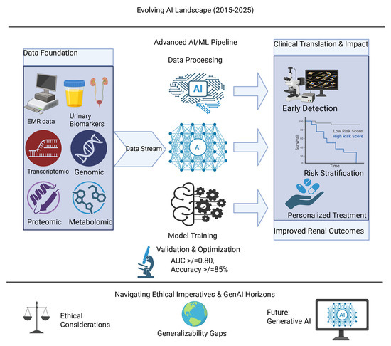 | Outcome | IFTA classification (binary or graded) and post-transplant graft survival. Modeled outcome includes differential gene expressions associated with necroptosis. Performance evaluated with AUC, Principal Component Analysis/PCA separation, and Kaplan–Meier curves for survival. | Moderate, grading differences across cohorts and batch effects may introduce misclassification bias |