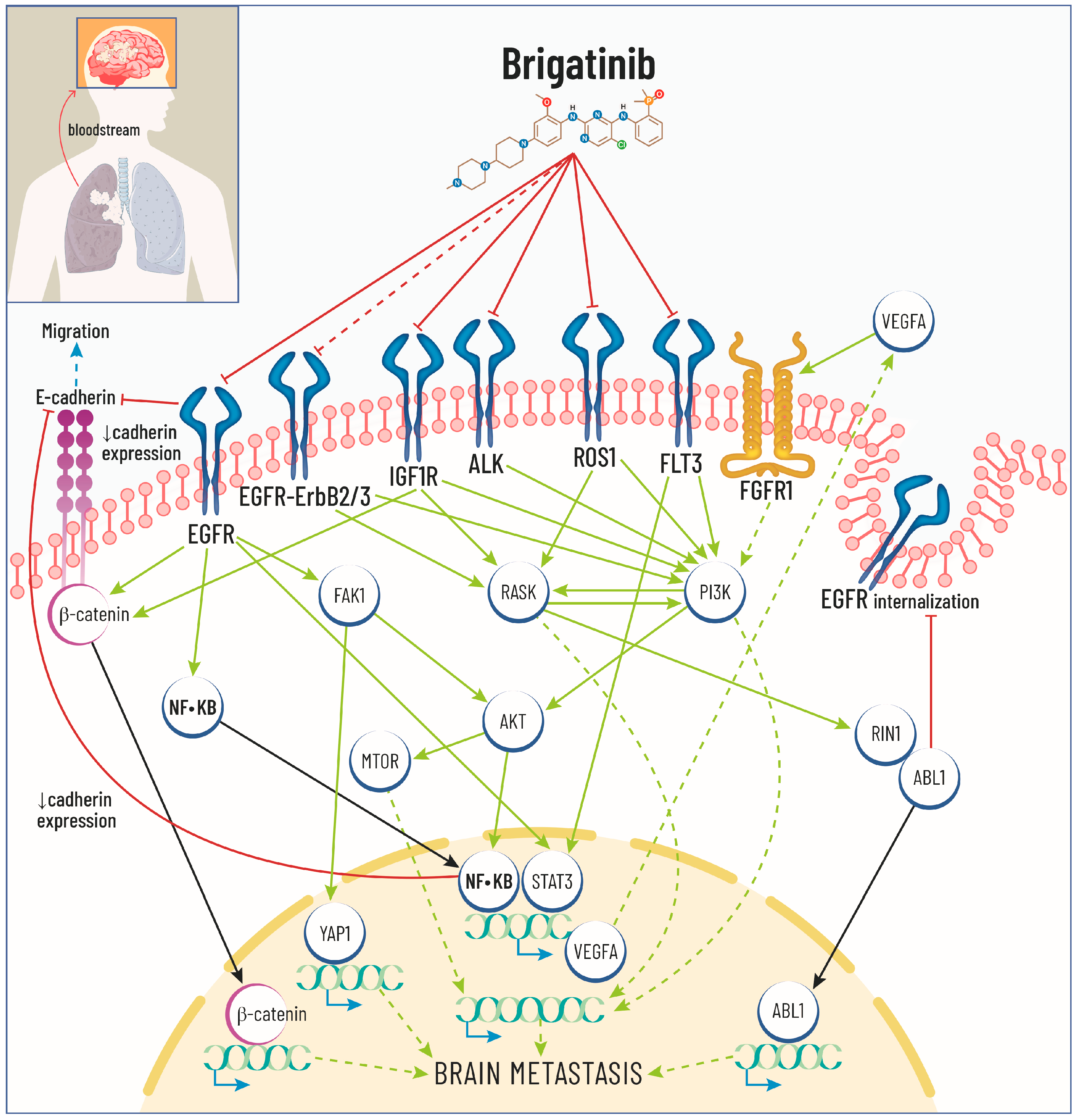 3.3. Predicted Brigatinib Mechanism of Action in ALK+ NSCLC BM