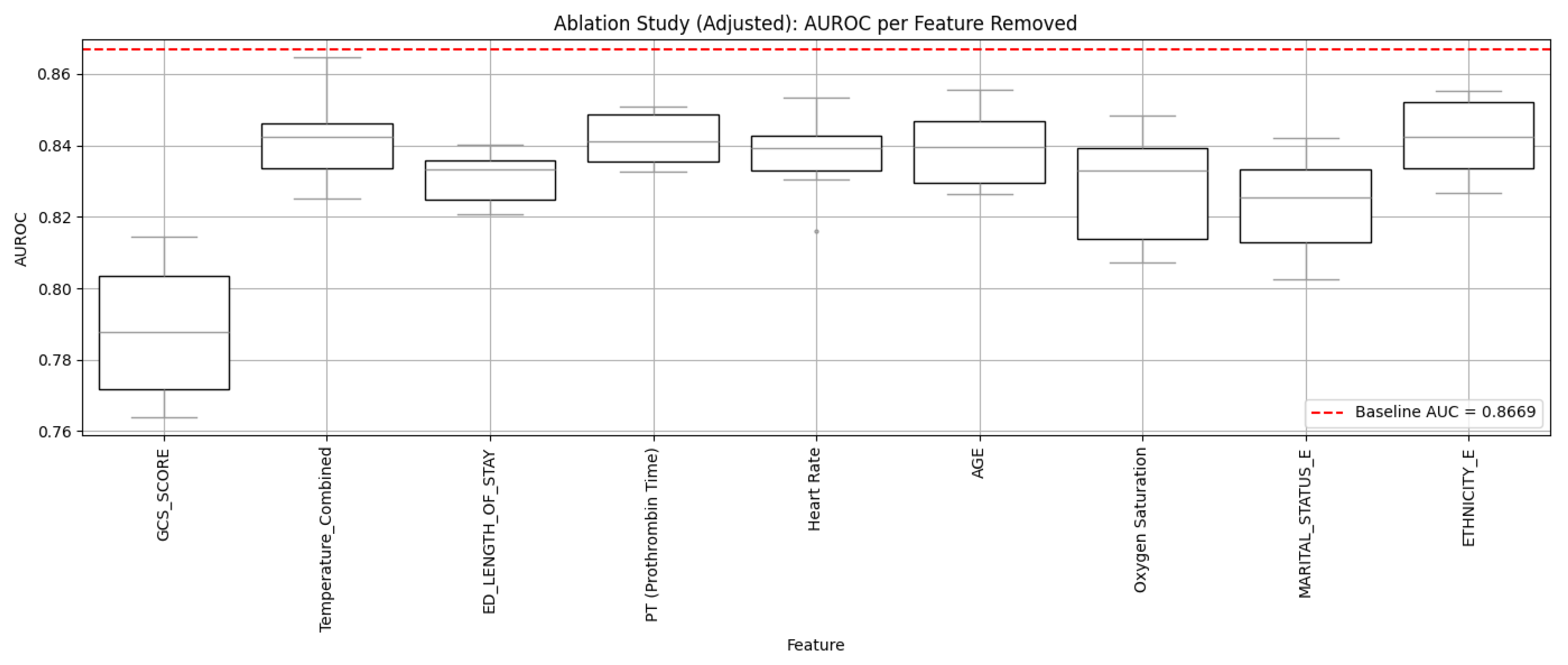 | Clinical Measurements | Glasgow Coma Scale Score (GCS_SCORE), Temperature (Temperature_Combined), Prothrombin Time (PT), Heart Rate, Oxygen Saturation |