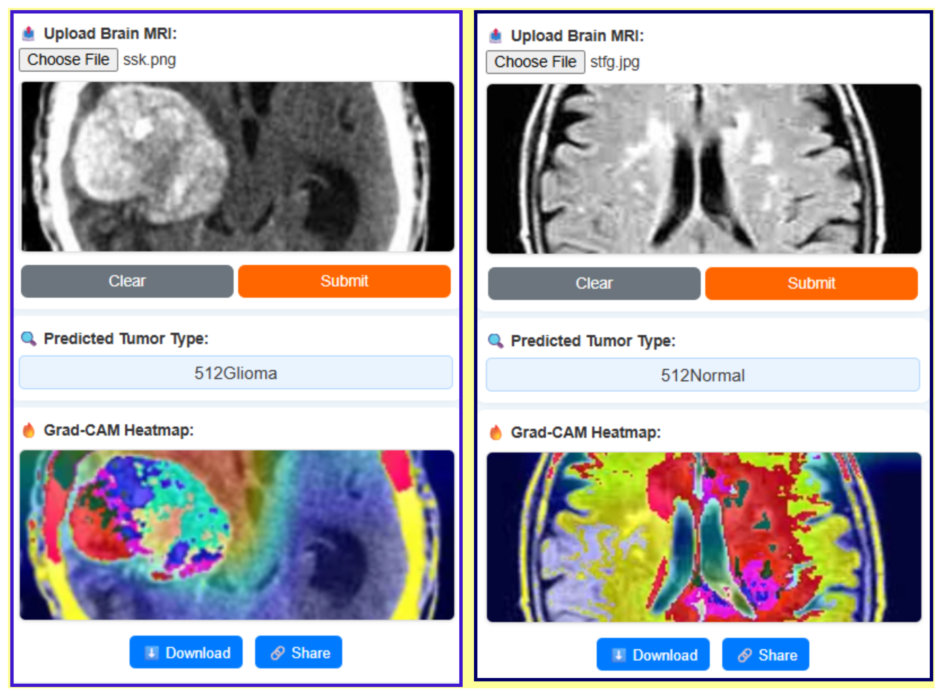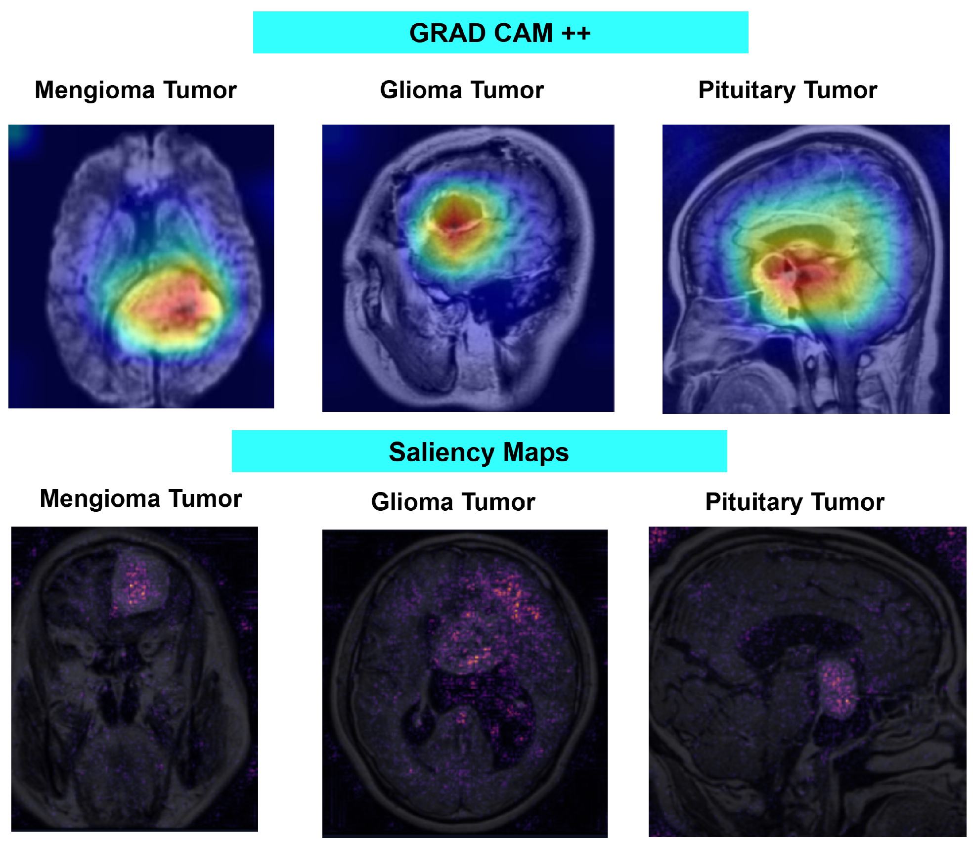 - Explainable AI techniques such as Grad-CAM++ and saliency maps are integrated, and a real-time web-based application is deployed to enable interactive MRI-based brain tumor prediction with visual explanations.