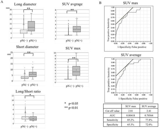 | SUV max | 3.5 (2.3–5.4) | 1.0 (1.0–1.0) | <0.001 ** | 2.51 | 2.07–3.10 | <0.001 ** | 2.11 | 1.66–2.68 | <0.001 ** |