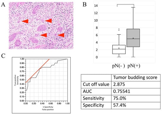 - Sakata, J.; Yamana, K.; Yoshida, R.; Matsuoka, Y.; Kawahara, K.; Arita, H.; Nakashima, H.; Nagata, M.; Hirosue, A.; Kawaguchi, S.; et al. Tumor budding as a novel predictor of occult metastasis in cT2N0 tongue squamous cell carcinoma. Hum. Pathol. 2018, 76, 1–8. [Google Scholar] [CrossRef]
