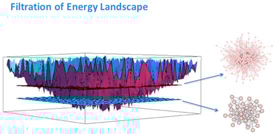 Figure 1. As the “filtration plane” moves up from the bottom, more-and-more nodes are captured in larger-and-larger energetic subnetworks for protein–protein interaction set.