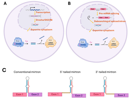 - Westholm, J.O.; Lai, E.C. Mirtrons: microRNA biogenesis via splicing. Biochimie 2011, 93, 1897–1904. [Google Scholar] [CrossRef] [PubMed]