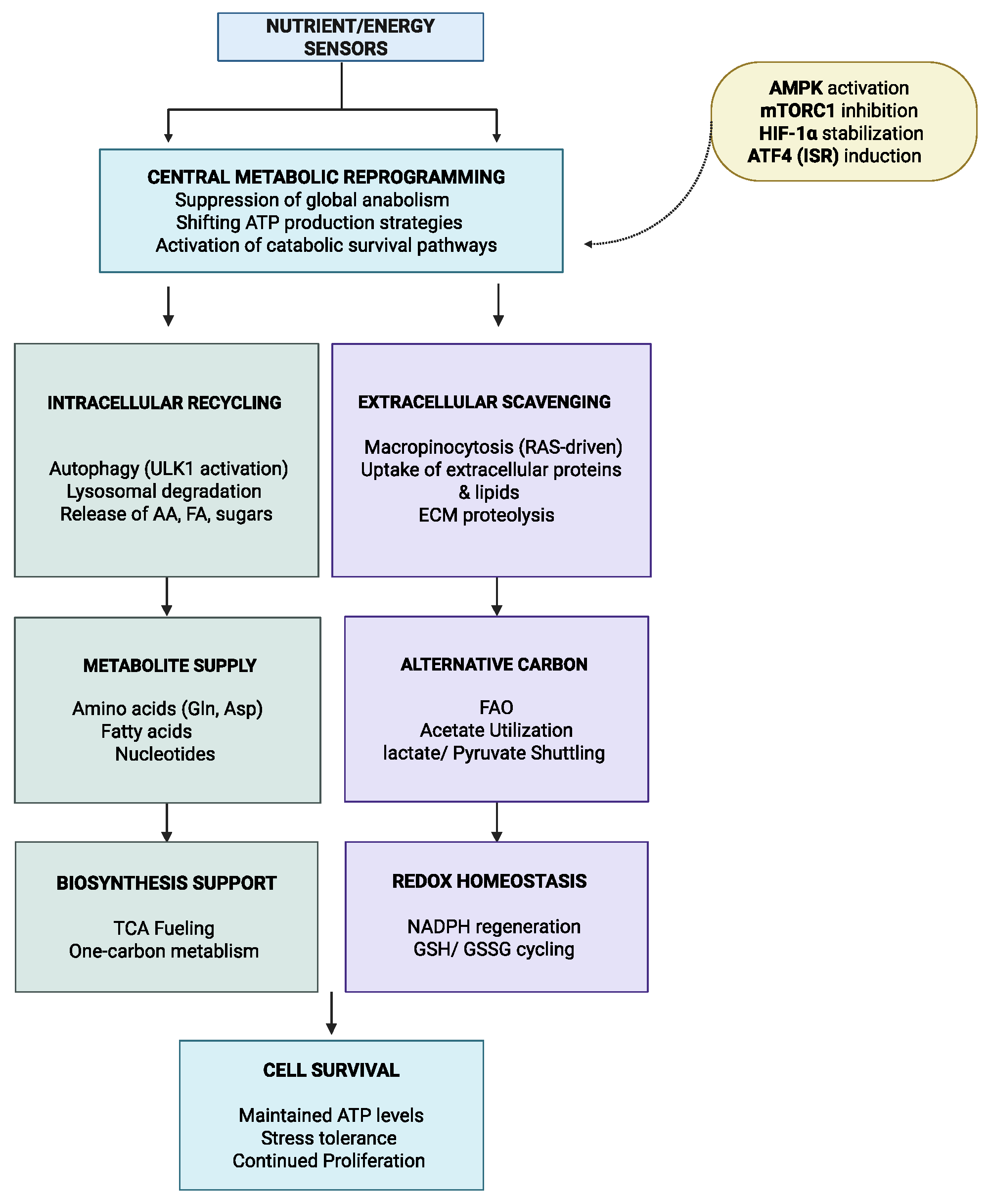 | Cancer cells depend entirely on glucose to grow, so limiting glucose will starve cancer cells. | Cancer cells exhibit metabolic plasticity and are not exclusively dependent on glucose. In addition to glycolytic substrates, tumors can utilize glutamine, fatty acids, lactate, and ketone bodies to support ATP production, redox balance, and biosynthesis. This flexibility allows cancer cells to adapt to variable nutrient environments and maintain proliferation even under glucose-limited conditions. |