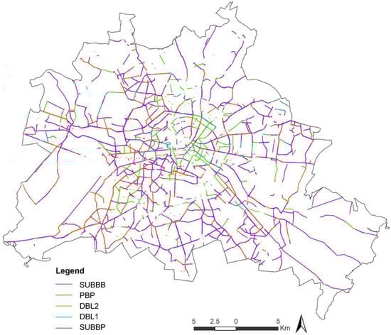 - Berlin Senate. Senatsverwaltung für Stadtentwicklung und Umwelt: Tabellenbericht zum Forschungsprojekt Mobilität in Städten—SrV 2013 in Berlin. 2014. Available online: https://www.berlin.de/sen/uvk/_assets/verkehr/verkehrsdaten/zahlen-und-fakten/mobilitaet-in-staedten-srv-2013/srv_2013_berlin_tabellen.pdf (accessed on 10 May 2017).