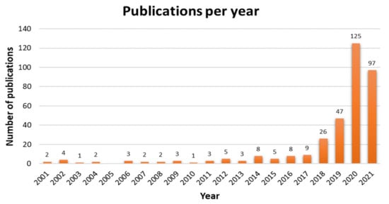 As a result, the initial research yielded 360 records based on the criteria that were initially established. According to Figure 1, these have a distribution of publication dates that demonstrate the growing interest in micromobility. The drop in the number of publications for 2021 is due to the fact that those published in the last third of 2021 were not considered at the time we conducted the research. Therefore, this does not indicate that the scientific community’s interest in the topic will decline in the following years.