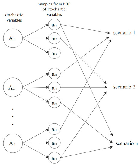 A scenario is defined as a set of values for the stochastic variables and is based on a decision tree, in which each path represents a distinct possible scenario and the values assigned to stochastic variables. The number of scenarios exponentially grows with the number of stages. In order to reduce computation cost, some techniques are recommended as follows: