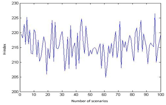 Figure 3. One hundred randomly generated scenarios and their related H-indexes.