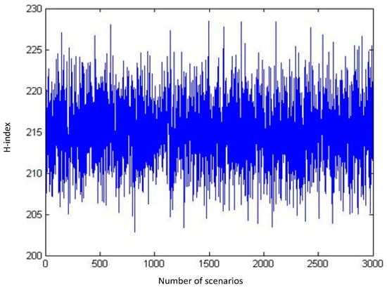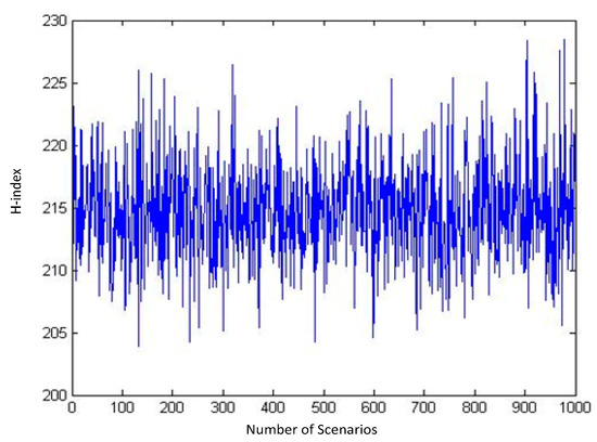 It can be inferred from these diagrams that as the number of randomly generated scenarios grows, the H-index tends to follow a normal distribution (Figure 6).