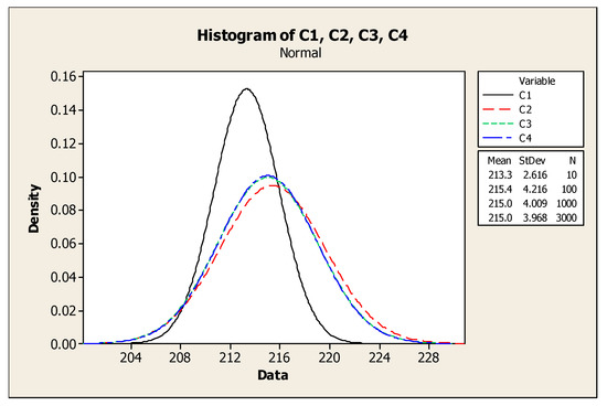As shown, by changing the number of scenarios from 1000 to 3000 only small changes in Mean and StDev of distribution are caused. So, 1000 scenarios can be enough to fit a normal distribution function for H-indexes. Using a sample of 1000 scenarios, we have fitted a normal distribution for the H-index with a mean of 215 and StDev of 4.009 in our problem as shown in Figure 6. Therefore, as we look for scenarios with the highest possibility to happen, we should go through the scenarios with a lower H-index. Here in our problem, we choose four scenarios with H-indexes in the interval [μ-3σ, μ-2.5σ], which equals to [202.973, 204.97], and with an identical approximation based on the expert judgments and also in order to avoid bias in further analysis, we can consider equal probability for each of these four scenarios. The data for all four scenarios are available in Appendix C.