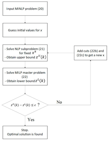 54. Duran, M.A.; Grossmann, I.E. An outer-approximation algorithm for a class of mixed-integer nonlinear programs. Math. Program. 1986, 36, 307–339. [Google Scholar] [CrossRef]