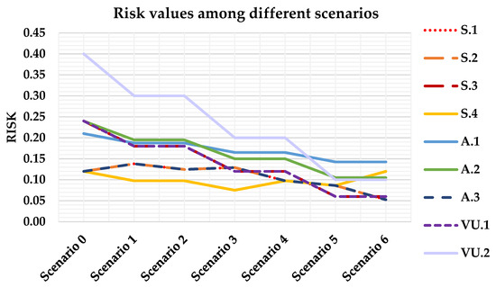 Use Case 3—Risk values of each identified issue for each scenario (AR.1 issue was not present in Scenario 0).