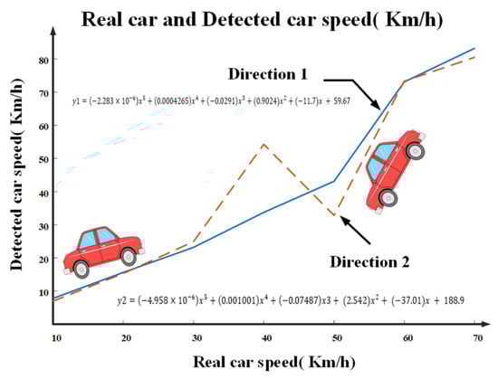 The result shows that when the UAV is in the car’s direction side, the detected speeds are nearer than the cases with more than 16 m (Figure 9).