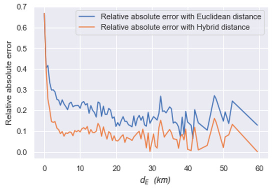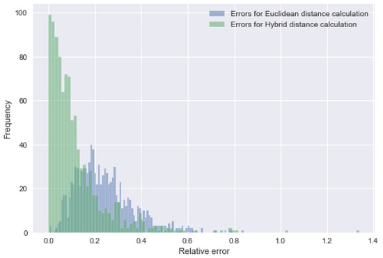 Relative error distribution with hybrid distance and Euclidean distance.