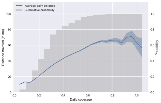 Evolution of the daily distance travelled with the daily data coverage.
