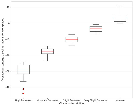 Summary of the cluster analysis for the variable “average percentage travel variations for workplaces in relation to the baseline”.