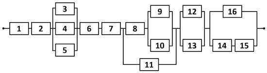 As mentioned in Section 1, our work focuses on multicomponent systems that refer to a mixture of a few components which may interact with each other. These components are structured in different configurations: serial, parallel, or a complex combination of serial and parallel structures. The structure of the system represents the way in which the components are arranged to perform a common function. The modeling of the system structure is vital because it conditions the overall functioning of the system. A serial system works if all its components work, but a parallel system works if at least one of its components works.