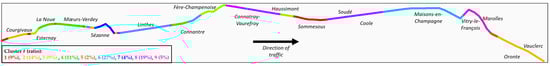 In data mining, two types of classification exist: supervised and unsupervised. Supervised classification is the data mining algorithm most often used for quantitative analysis. In the literature, supervised classification algorithms are often used with image data. In this case study, agglomerative hierarchical clustering (AHC) combined with a factor analysis of mixed data (FAMD) is considered since its use has been proven relevant for road markings []. This strategy is introduced in Section 4.