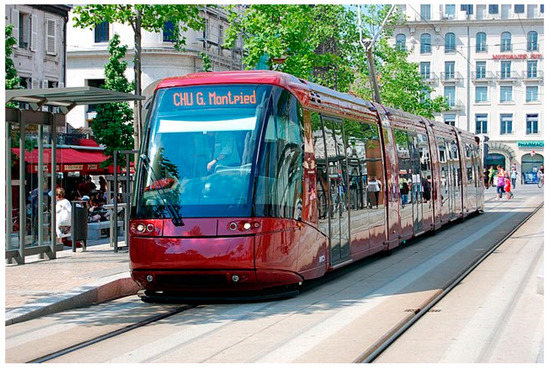 - Fabien1309. Tram sur la place de Jaude à Clermont-Ferrand. (2007). Available online: https://commons.wikimedia.org/wiki/File:Tram_place_de_jaude_1.jpg (accessed on 30 May 2023).