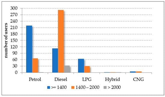 For the first group (330 users), the investment and running costs were estimated using the ACI tool [44] for the most recurring car models of the employees’ fleet. The annual mileage for gasoline and hybrid vehicles was assumed to be equal to 15,000 km per year, whilst for diesel, LPG, and CNG cars, 20,000 km was assumed. The fuel expense provided by the ACI tool was updated by applying the average 2022 national prices (Table 3), only taking into account the vehicle fleet of the employees of the ENEA “Casaccia” Research Centre.