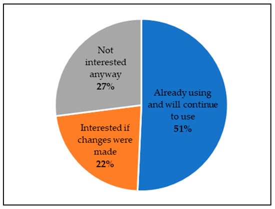 A total of 445 respondents do not use the company transport service. Of these, more than half are not interested in using it since most of them live in the surroundings of the workplace, and they can schedule home-to-work travels in a flexible manner with their privately owned vehicle (Figure 8).