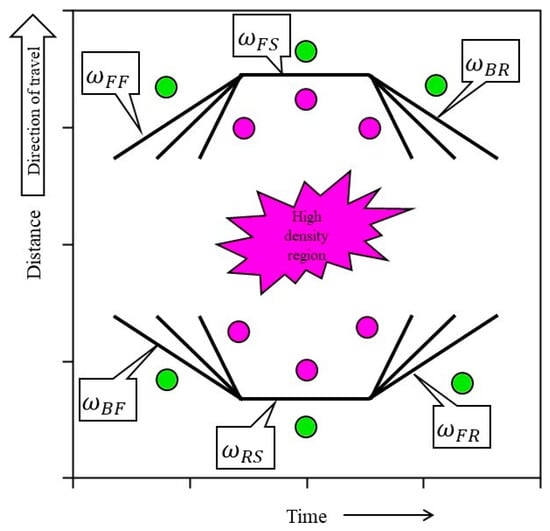 Illustration for the classification of shock waves [] (High-density/congested region denoted by pink circles and uncongested region denoted by green circles).