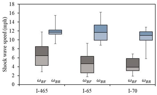 - It was also estimated that every 100 vehicles per hour per lane would increase the backward forming shock wave speed by 1.34 mph on the I-465, 0.71 mph on the I-65, and 0.78 on the I-70 in Indiana (Figure 15).
