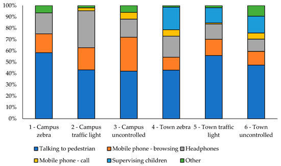 Percentage of observable distraction behaviours by crossing site.