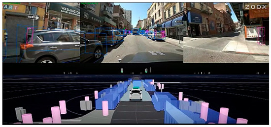 Our four conditions included several videos (control, educational, experiential, and both educational and experiential) we found or produced and were differentiated based on the videos’ content. We produced a seven-minute educational video using information gathered from the Partners for Automated Vehicle Education (PAVE) website (www.pavecampaign.org) that introduced the different technologies that enable automated driving, what kinds of tasks automation performs better than or worse than human drivers, and the potential benefits of AV acceptance. The seven-minute educational video is intended to be objective and informational only rather than persuasive, but the information presented may cast AVs in a positive light because only the potential benefits of AVs are discussed. Our experiential video used raw footage provided by an AV developer (Zoox, Inc.; www.zoox.com) of one of their AVs driving around San Francisco, which included both a representation of what the automated driving system (ADS) ‘sees’ and footage from cameras mounted on the hood and both side mirrors (Figure 1). This experiential video contains only footage of an AV successfully navigating various driving conditions, so it frames AVs in a positive light, but only contains examples of the current state of the technology and does not discuss what the future might look like once technology advances far enough for fully automated vehicles to be the standard. For the video employed in the control condition, we used a two and a half minute long pre-made video describing how ridesharing services like Uber and Lyft work that we found on YouTube [38].