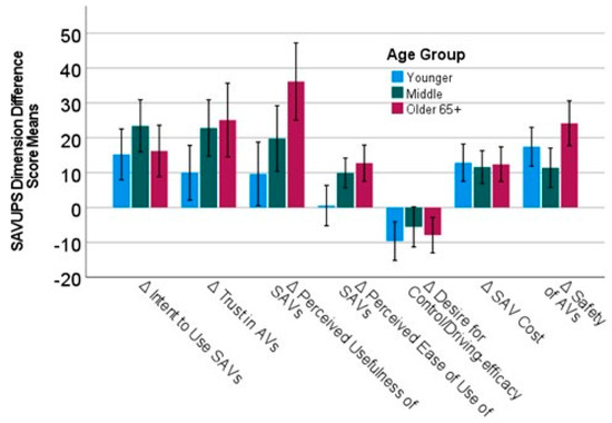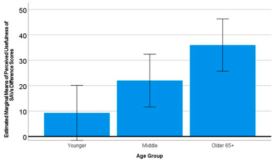 SAVUPS perceived usefulness of SAVs difference scores by age group. Error bars are 95% CIs.
