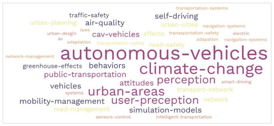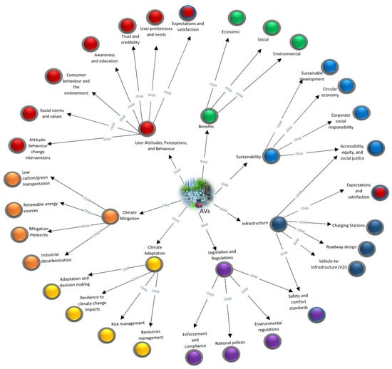 The benefits theme was created with three sub-themes: economic, social, and environmental. These sub-themes were given a wide scope to accommodate the benefits of AVs in urban areas. From a social and economic perspective, according to studies [29,30,31], AVs in public transportation have improved traffic flow and reduced congestion. By decreasing transportation times and related expenses, these developments improve the economic efficiency of urban areas.