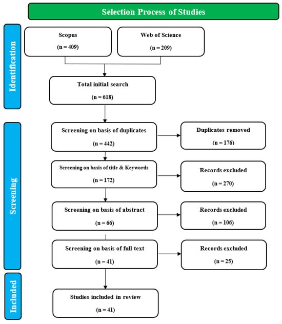 Figure 2 illustrates the process used for the identification of relevant studies, displaying how various databases were systematically searched and filtered to compile the research material. This graphical representation serves as a clear visual aid, detailing the methodology behind the selection of studies, including the criteria for inclusion and exclusion, ensuring transparency and replicability in the research process.