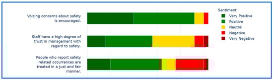 | B17 There is good communication up and down this organization about safety. | Communication | An IA could reduce the reporting burden of operational staff if there could be an IA function to transmit details of concerns and safety observations directly to safety departments (though the ‘narrative’ should still be written by humans). An IA ‘network’ or hub could be useful for safety departments to assess safety issues rapidly and prepare messages to be cascaded down by senior/middle management. | Medium |