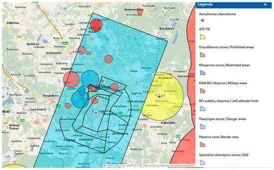 The regulation of unmanned aerial vehicle (UAV) corridors (source: maps.lt).