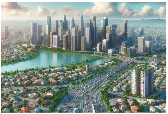 A modern vision of an automotive city revolves around creating a dynamic, efficient, and sustainable urban environment tailored to the needs and preferences of individuals relying on cars (Figure 5). This involves minimizing traffic congestion, optimizing travel times, and integrating advanced technologies for efficient traffic management. Despite the focus on automobiles, the city aims to be a leader in environmental sustainability. This includes promoting electric, hybrid, and autonomous vehicles, investing in green infrastructure, and implementing measures to offset the ecological impact of widespread car usage with innovative infrastructure. This includes smart roads, intelligent parking solutions, and cutting-edge technologies that enhance the overall experience of automotive travel. This involves smart traffic monitoring, strict enforcement of traffic regulations, and community engagement programs to promote responsible driving habits. Technological innovation is envisioned as a catalyst for economic prosperity. The city aims to be a hub for innovation, attracting investments, creating job opportunities, and contributing significantly to the local and national economy. In summary, the long-term vision for an automobility city aims to create a well-balanced urban environment that leverages the benefits of car-centric transport while prioritizing sustainability, quality of life, economic growth, and technological innovation.
