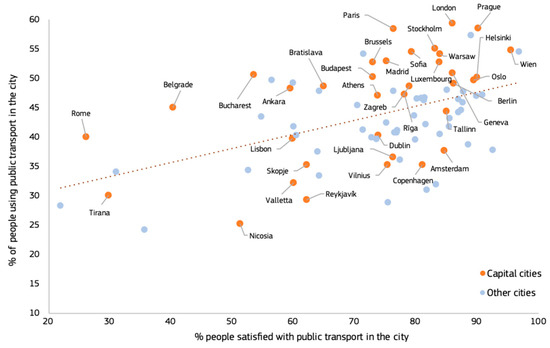 As a consequence of the new vision, the planning paradigm shifted its focus from traffic to mobility: the movement of people and goods [47]. The Sustainable Urban Mobility Plan (SUMP) represents a European approach that is vision-led in terms of multimodal planning. It emphasizes mode choice and acknowledges that a plan should be shaped through a participatory process. The simple linear “predict and provide”, based on forecasting vehicular traffic demand and supplying new roads, has shifted to a more complex and articulated “decide and provide” approach to reduce individual motorized travel, to promote public (PT) and active transport (AT) to move people, not cars, in the most efficient and sustainable manner possible. PT utilizes urban space more efficiently than private cars, making it a solution for transforming roads and managing improvements to AT, sharing vehicles, and public spaces.