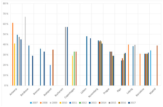 - Beim, M.; Haague, M. Freiburg’s Way to Sustainability: The Role of Integrated Urban and Transport Planning; Real Corp.: Vienna, Austria, 2010. [Google Scholar]